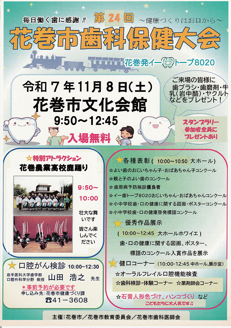 〇「口腔癌検診」は岩手医科大学歯学部口腔外科の先生による検診です(事前予約が必要です)